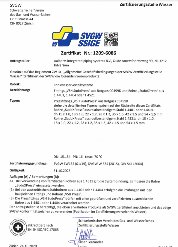 DVGW SudoPress Koper certificaat